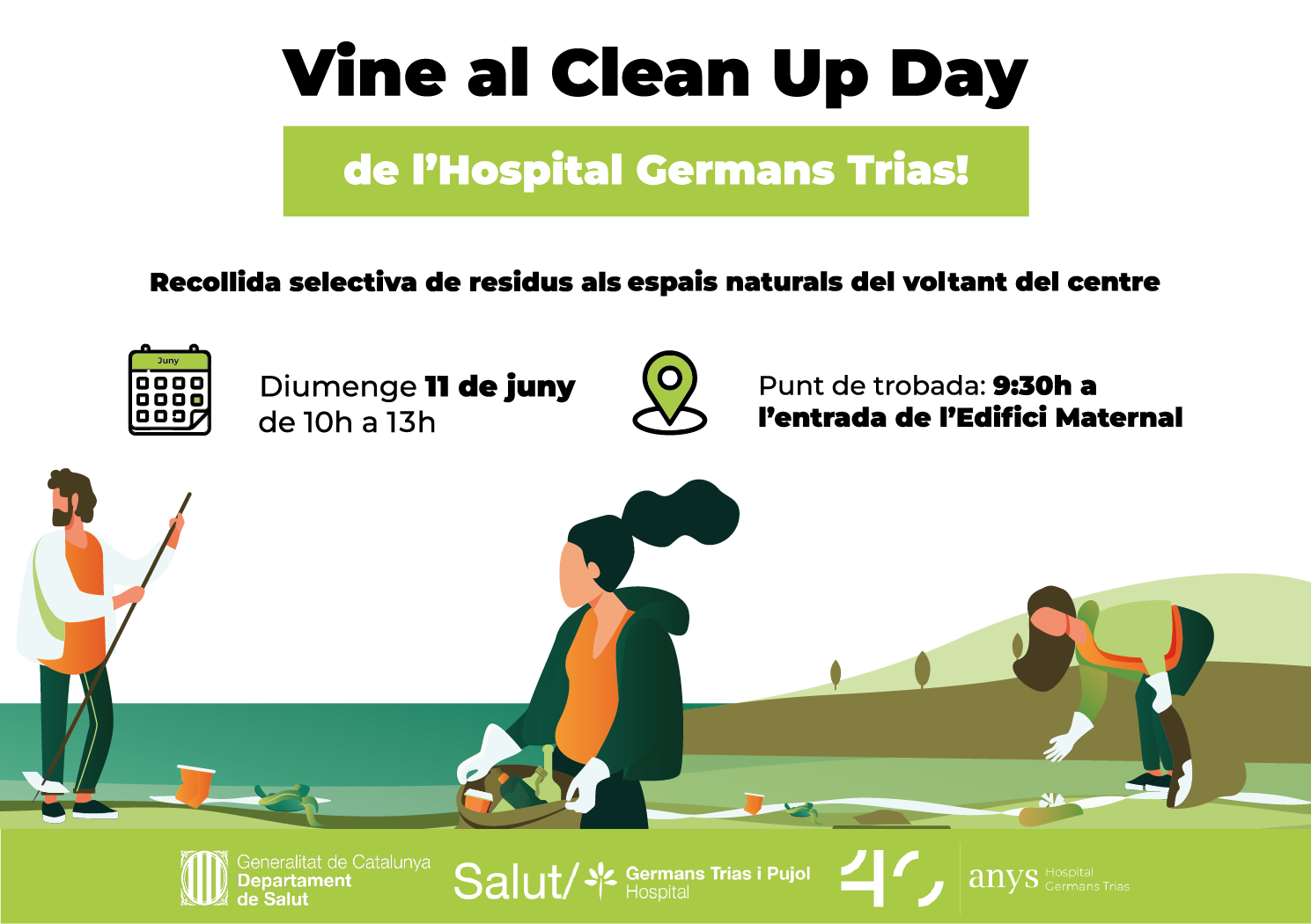 El passat diumenge 11 de juny l'Hospital Germans Trias va celebrar un Clean Up Day en el marc dels actes per commemorar el seu 40è aniversari. Prop d'una trentena de persones va participar a l'activitat on es van recollir gairebé 100 quilos de residus al voltant de l'hospital i a part dels espais naturals que l'envolten. Amb aquest Clean Up Day també es va commemorar el Dia Mundial del Media Ambient celebrat cada any el 5 de juny.